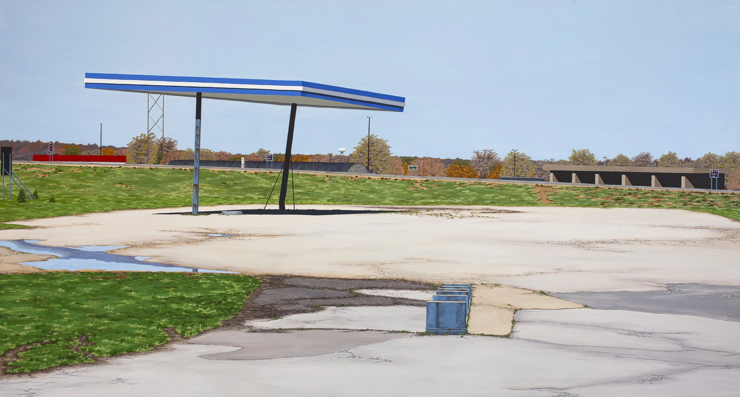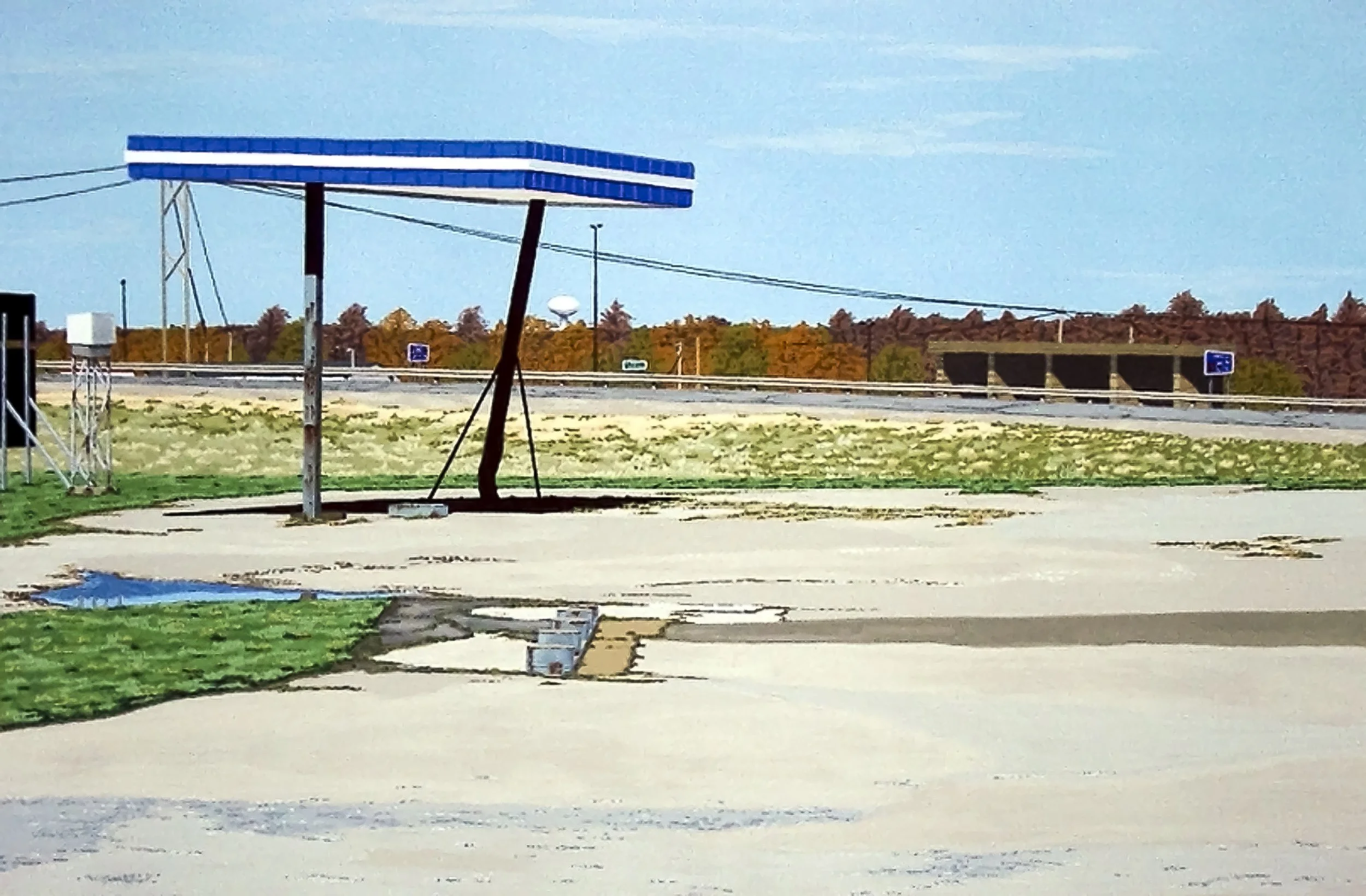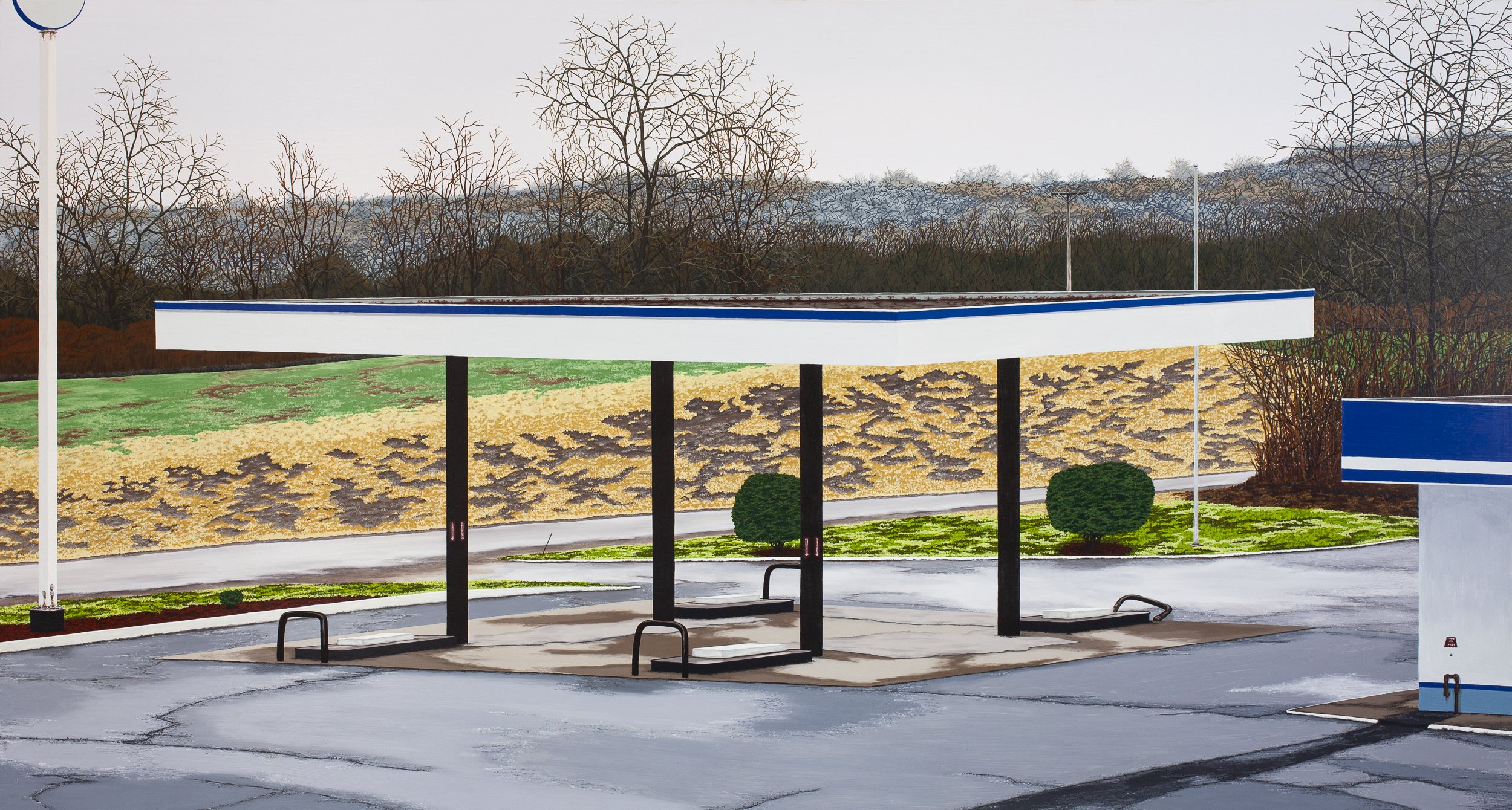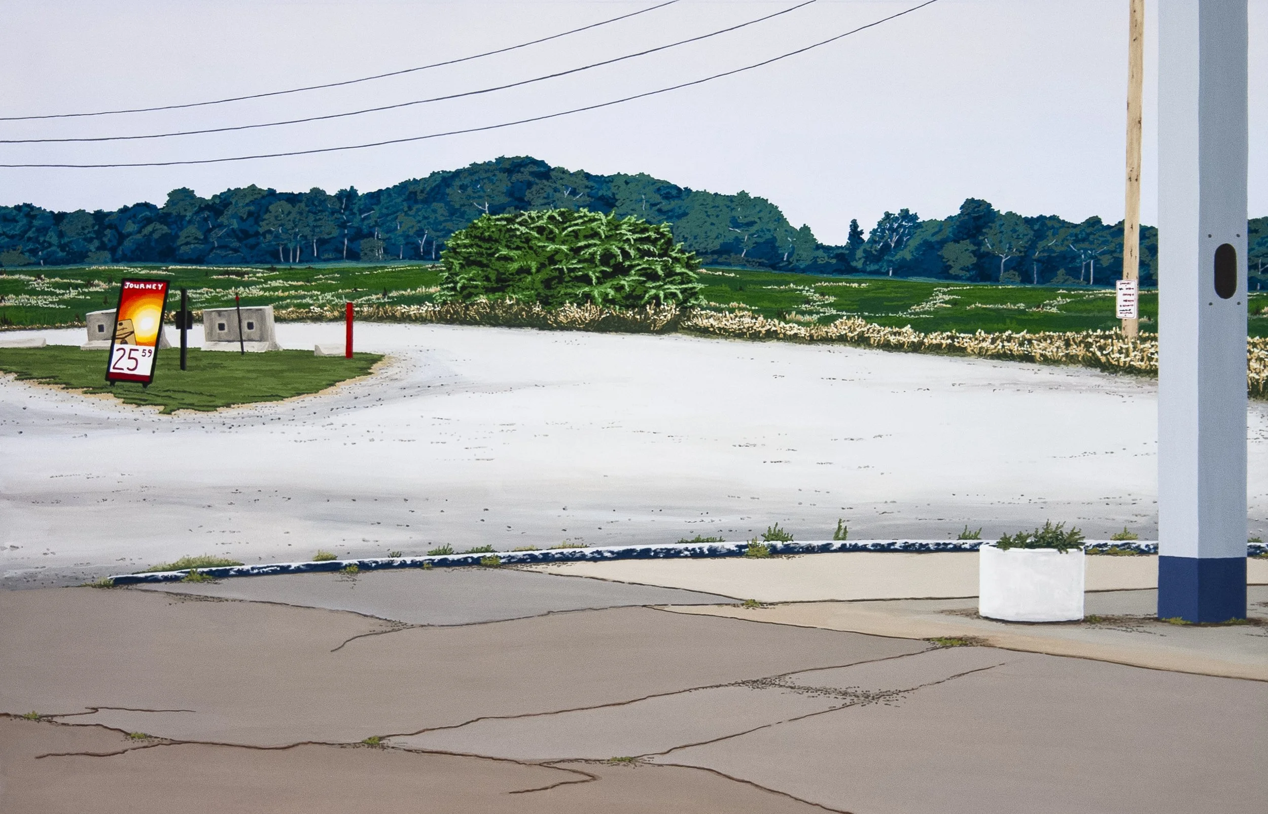 Go West Young Man - Stop-N-Rest, 2004, oil on panel, 25.5 x 47 in