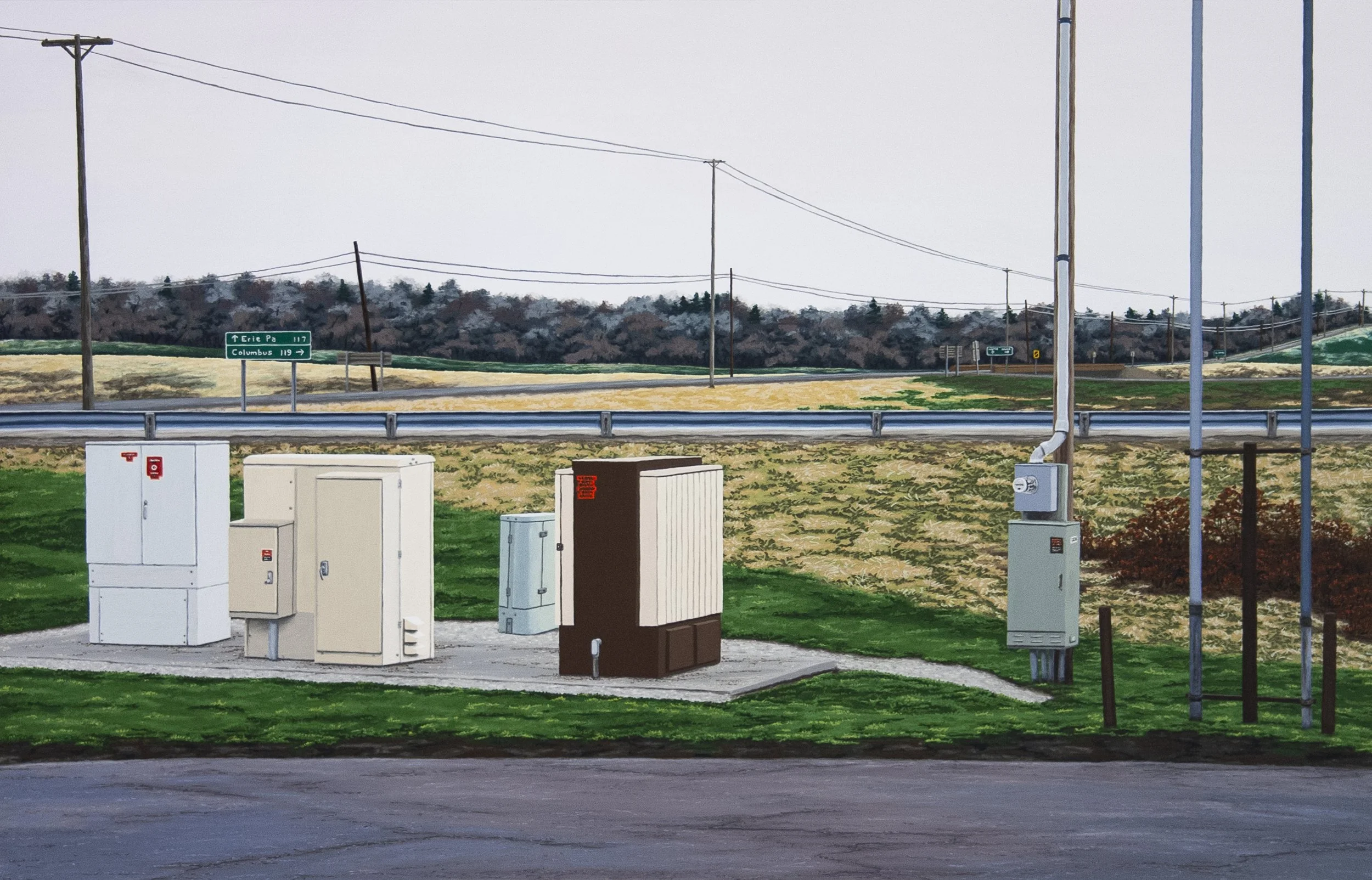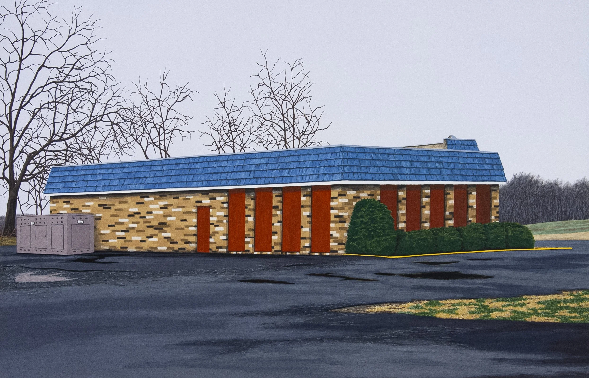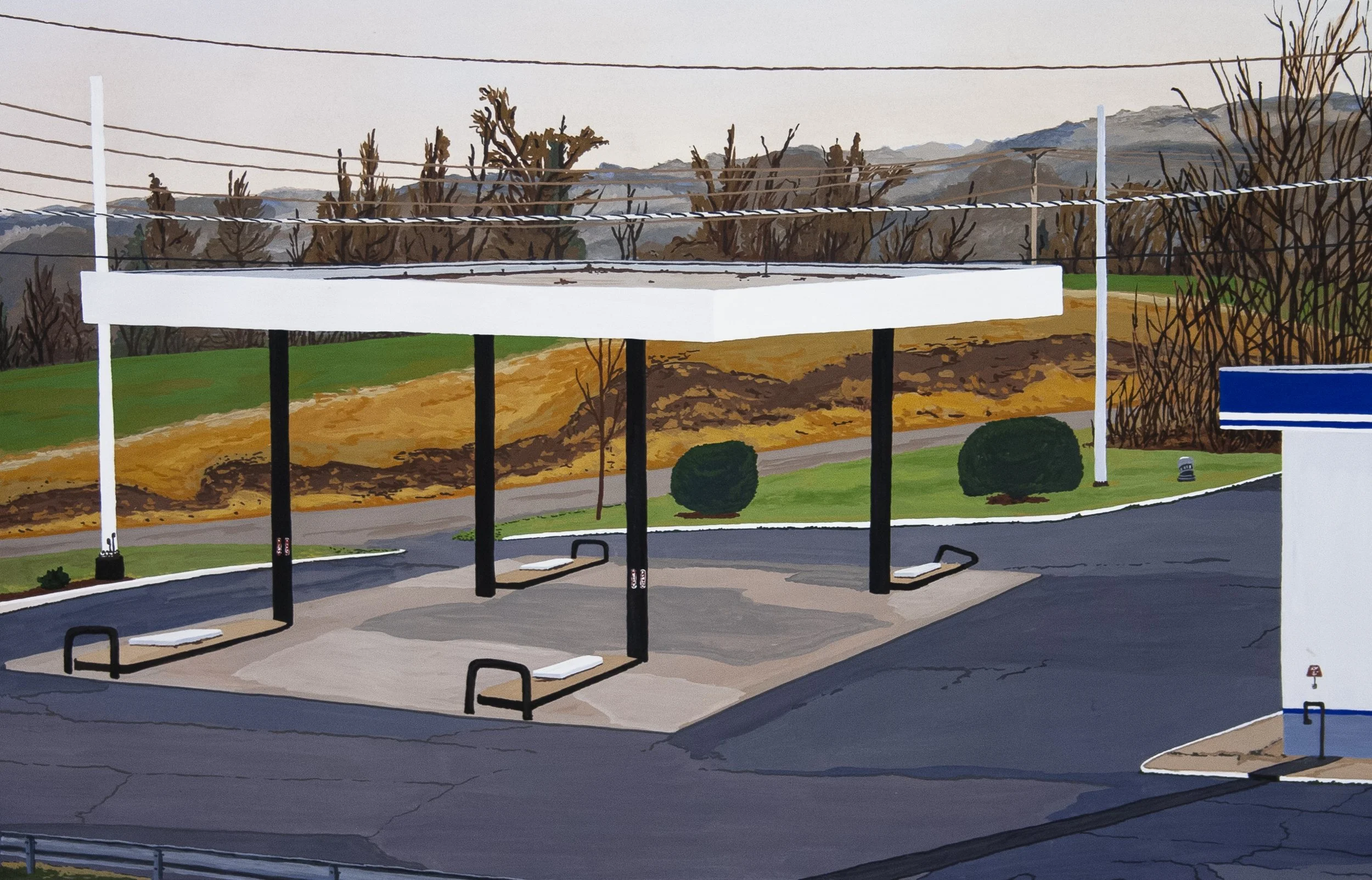 Go West Young Man - Stop-N-Rest, 2004, oil on panel, 25.5 x 47 in