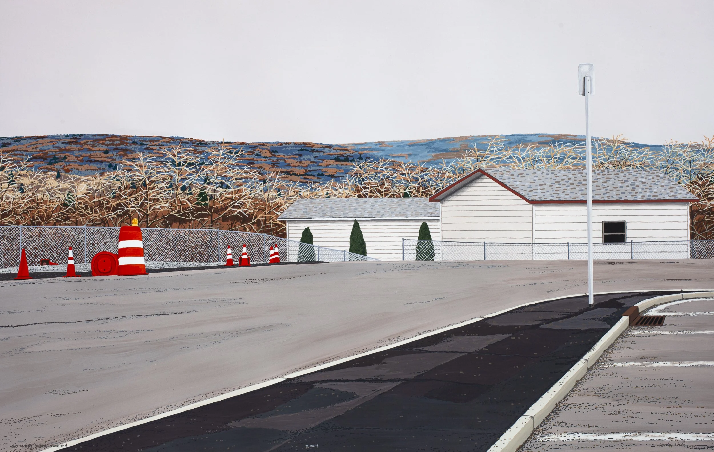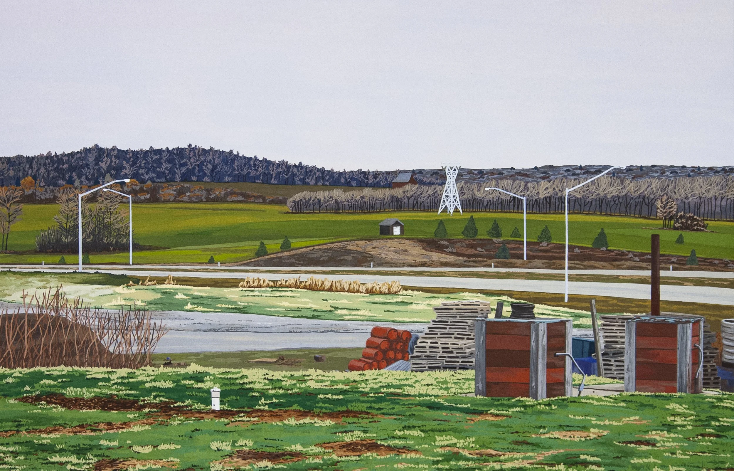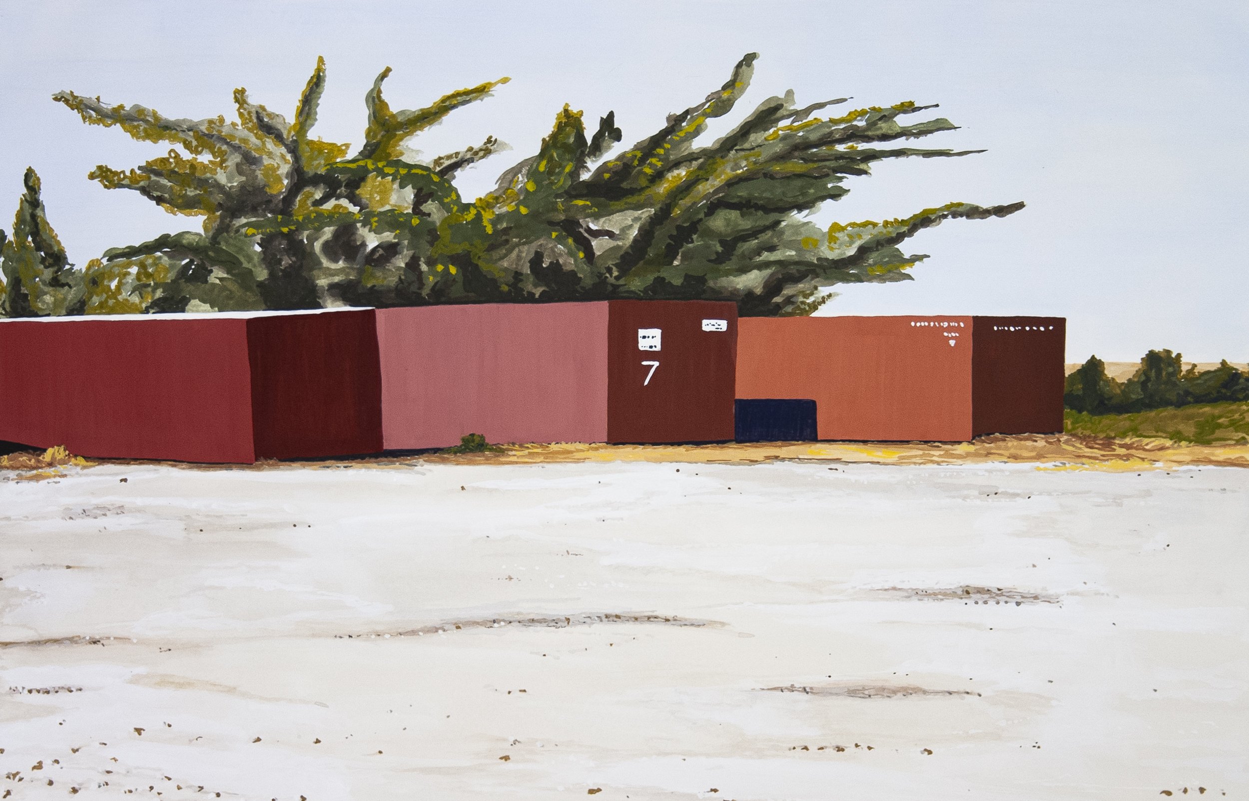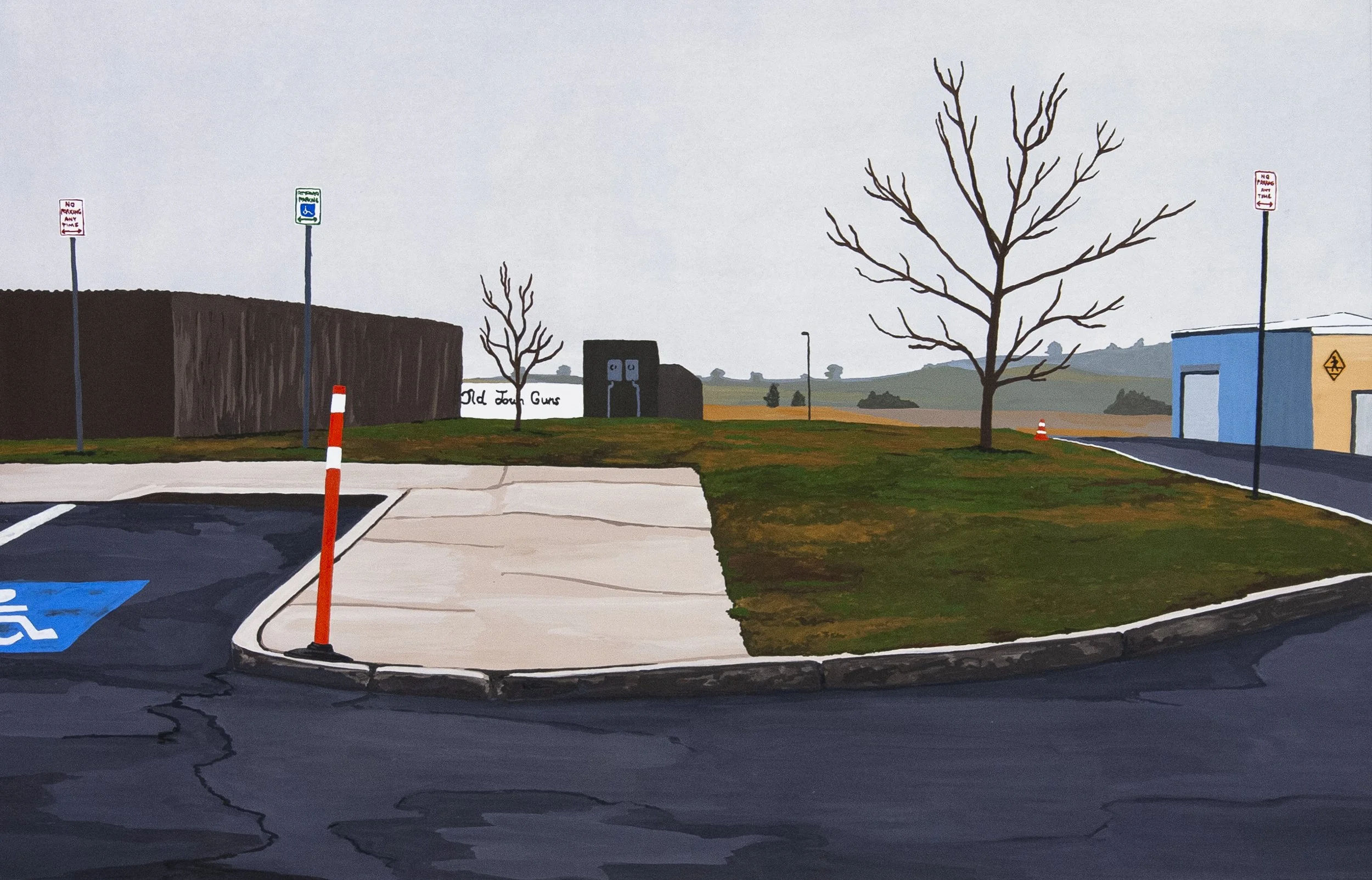 Go West Young Man - Stop-N-Rest, 2004, oil on panel, 25.5 x 47 in