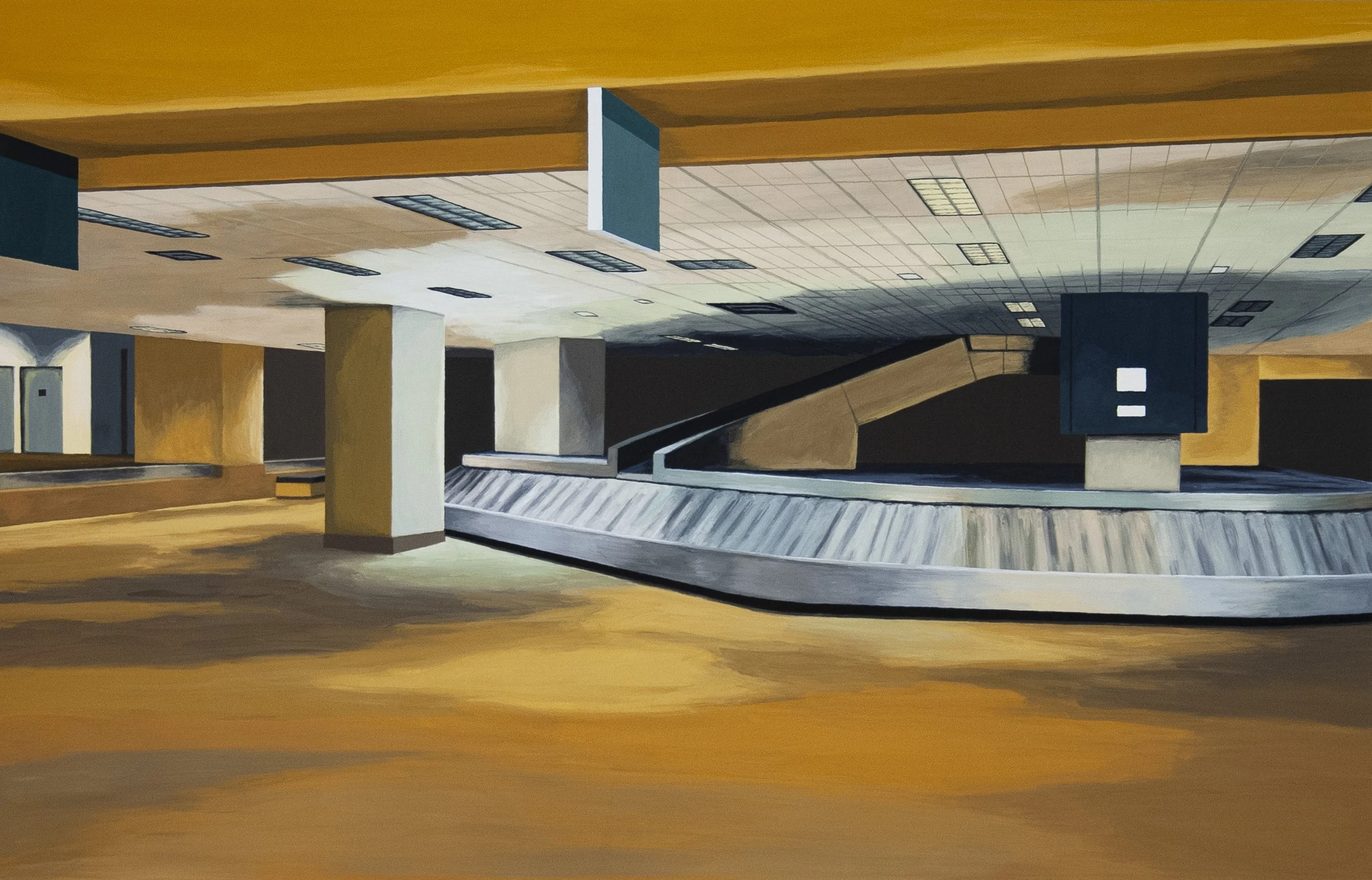 Baggage Claim #1, 2005, gouache on paper, 15 x 22 in