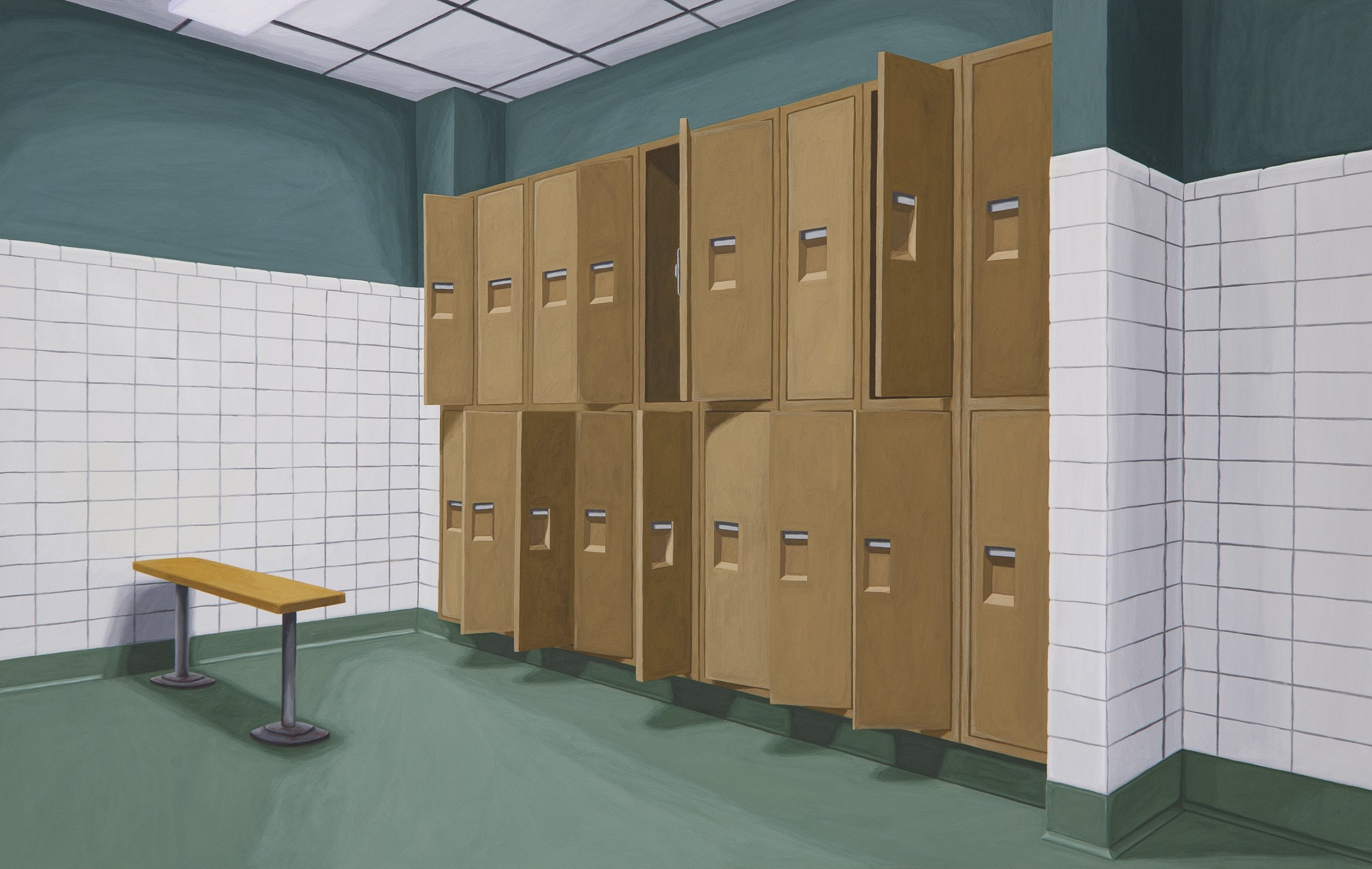 Locker Room, 2010, gouache on paper, 15 x 22 in